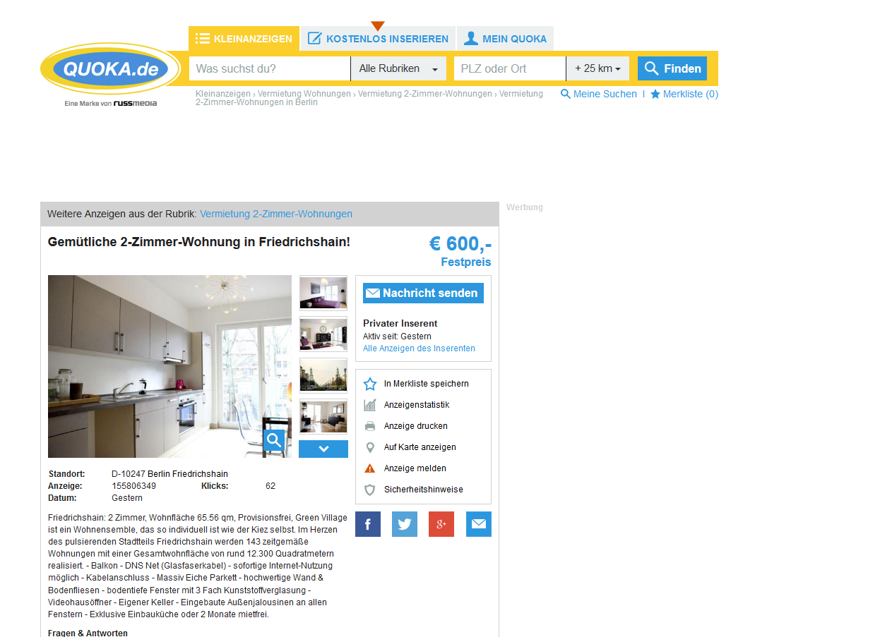 Wir vereinbaren nur Einzeltermine bitte senden Sie uns ein paar Zeilen über sich inklusive Ihrer Postadresse, damit wir Ihre Anfrage bearbeiten können. Es handelt sich um ein Vorderhaus, als auch um ein Gartenhaus. Von diesem aus gelangt man in alle Räume.